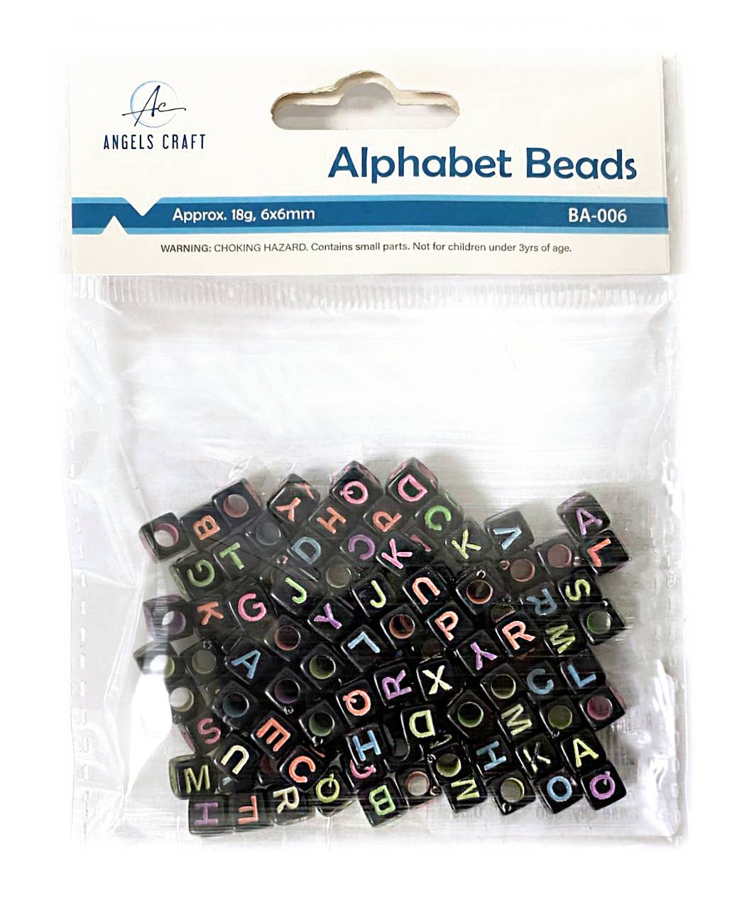 Beads - Alphabet Beads Cube Shape Black w/ multi-color letters