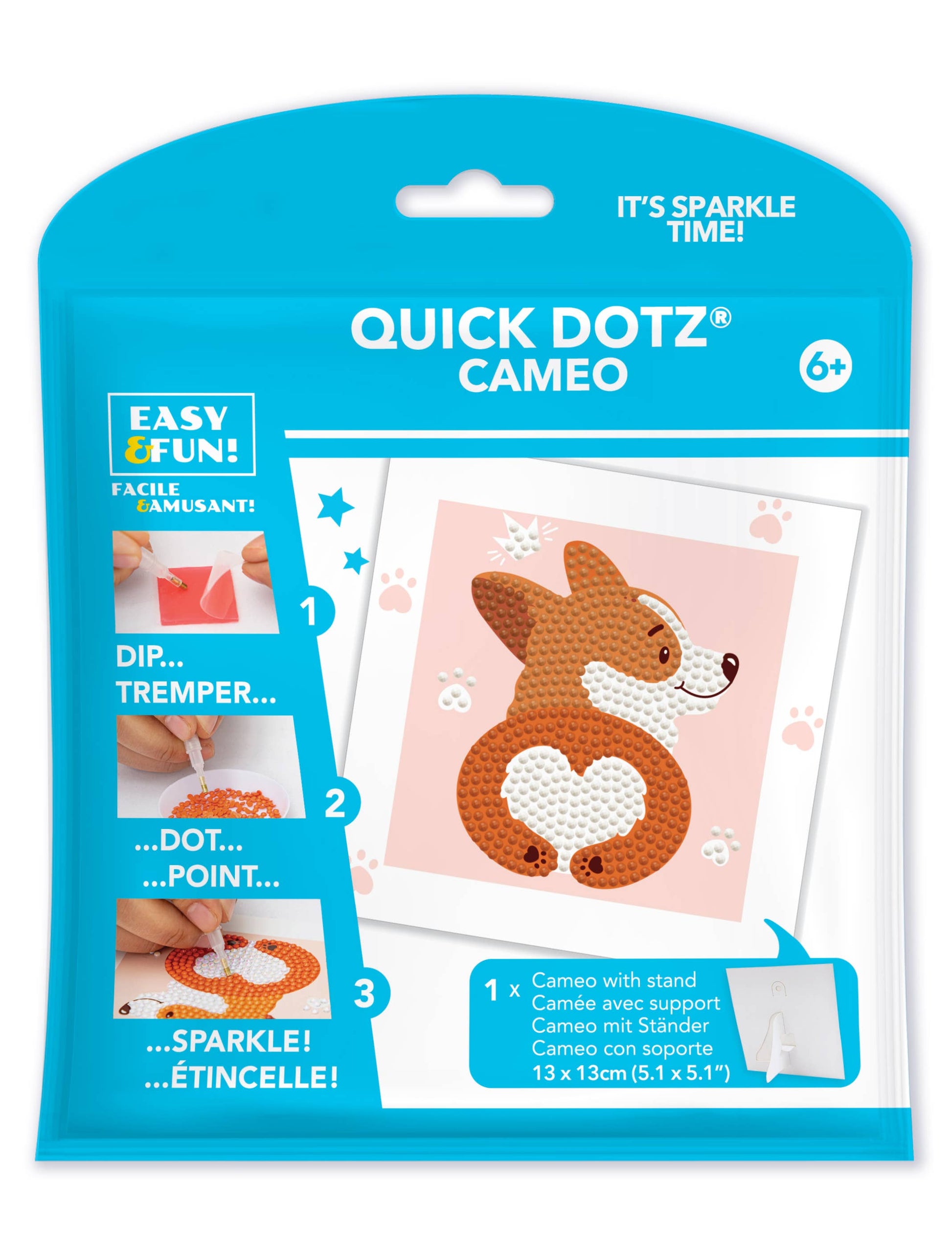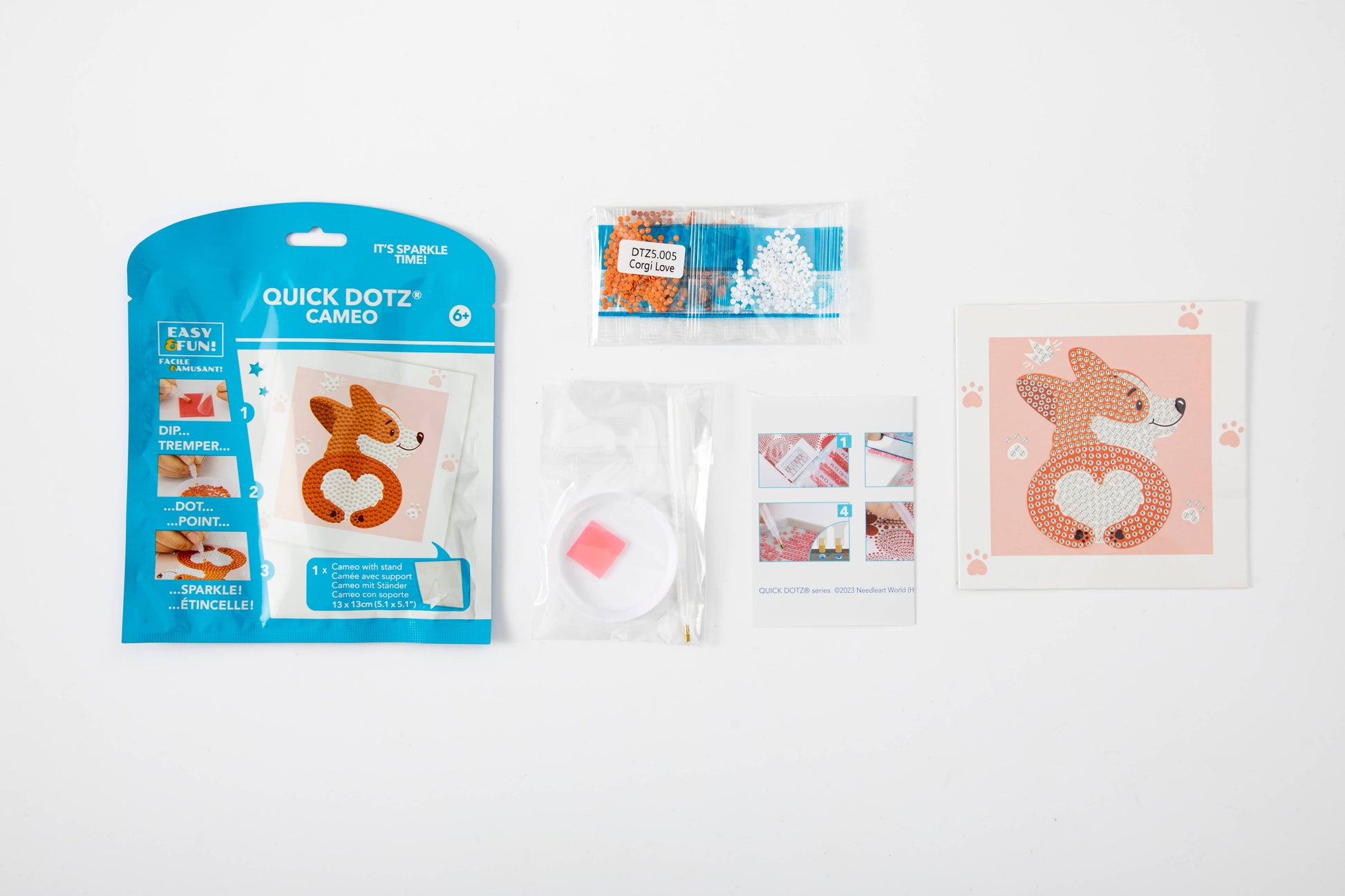Show off your pup-loving spirit with the Diamond Dotz Quick Dotz Corgi Love kit! This charming corgi design is decorated with round diamonds and comes with a printed border fold-out stand and hanging tab. A paw-fect gift idea from the world of Diamond Painting Kits for Adults Diamond Art Kits and kids diamond art fans.