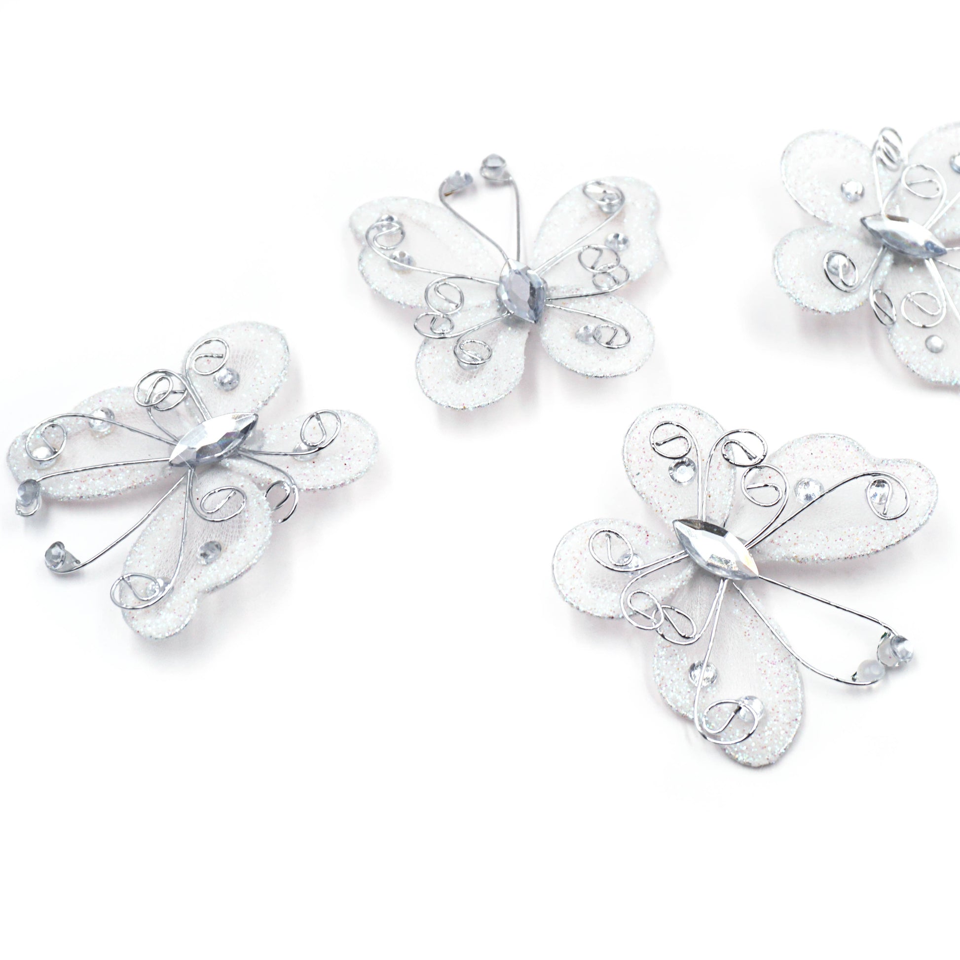 This item is 4-ct wire butterfly embellishments. Each butterfly measures approximately 2.09in. x 1.57in. (5.3x4cm)