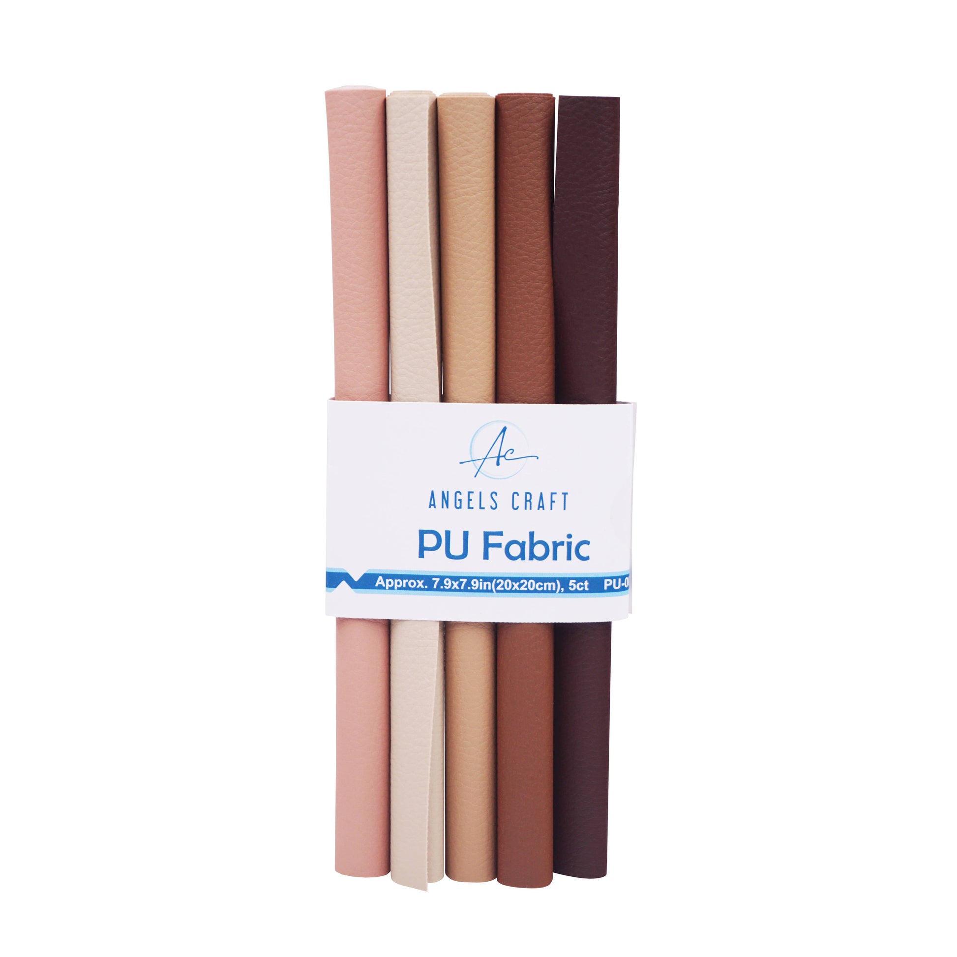 This item is 5-ct PU fabric (faux leather) in an assortment of neutral colors. Each square is approximately 7.9in x 7.9in (20x20cm). 5-ct PU fabric
