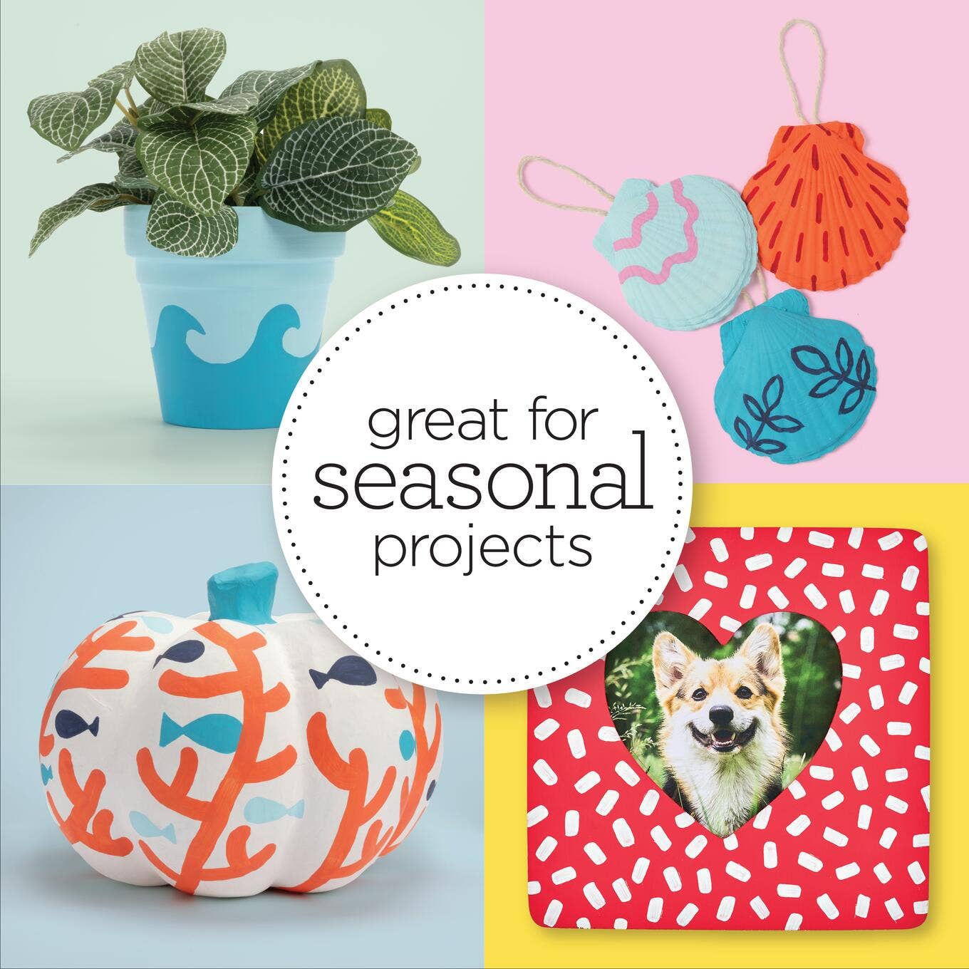 These smooth, high-quality paints glide on effortlessly and dry quickly to a stunning matte finish. Paint wooden sailboats, decorate seashells, or craft beachy home décor. Use them with brushes, stamps, stencils, or sponges to create wave-worthy masterpieces. Set sail on your next creative journey with the Apple Barrel Seaside Marina Paint Set!