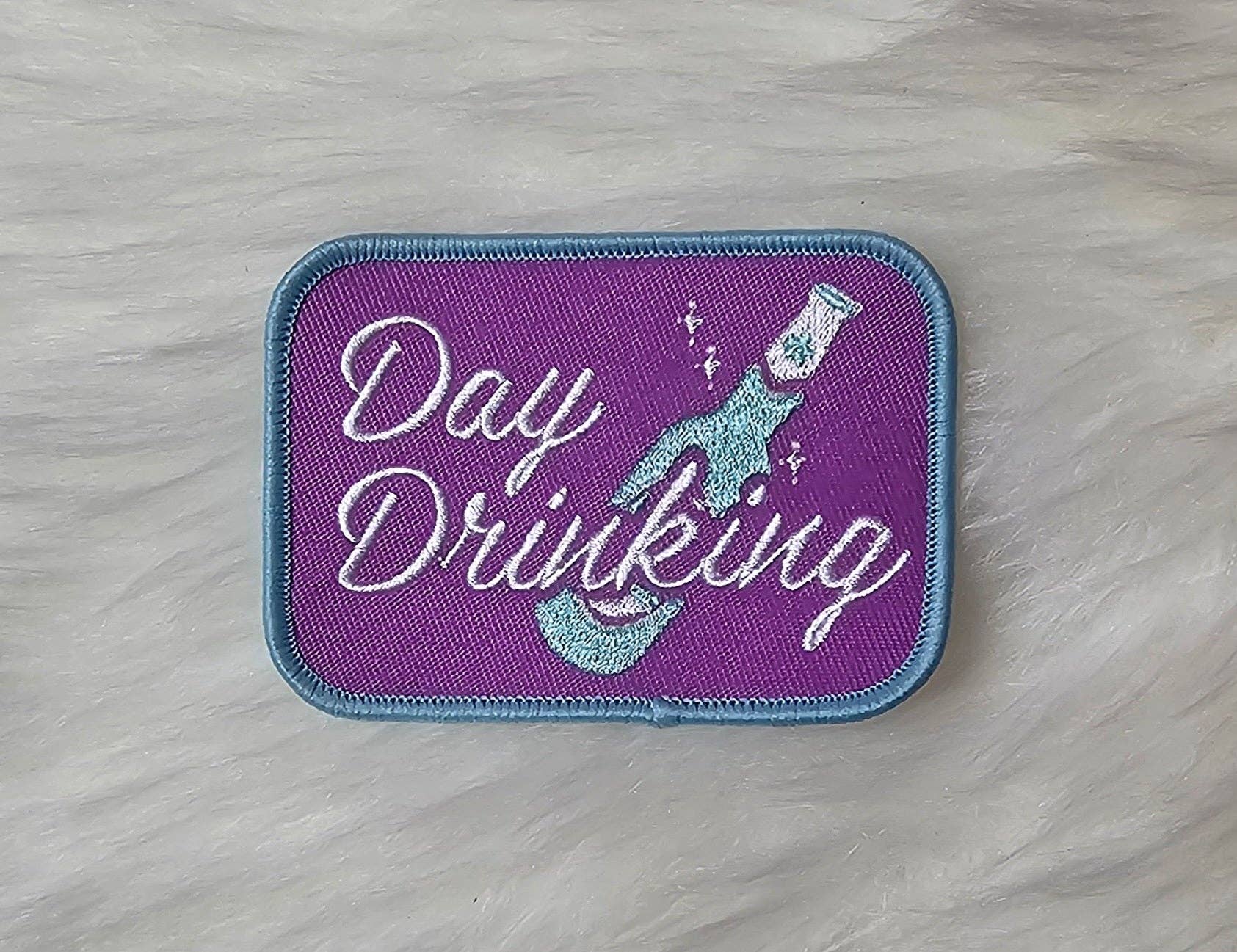 Patch - 'Day Drinking' Champagne Bottle Purple and Blue Embroidery Iron On Patch