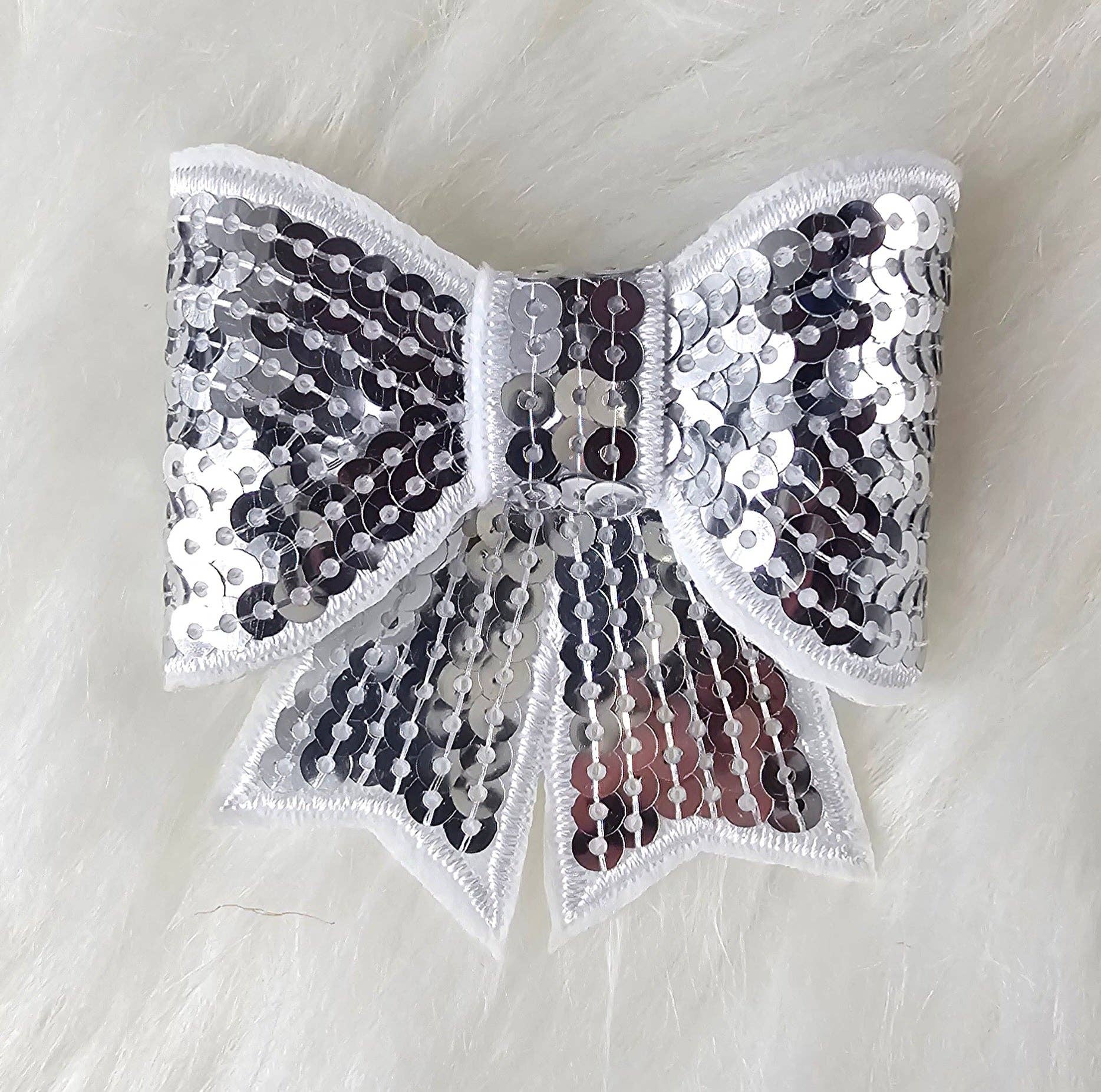 Patch - Small Sequin Bow Iron On Patch: F Silver